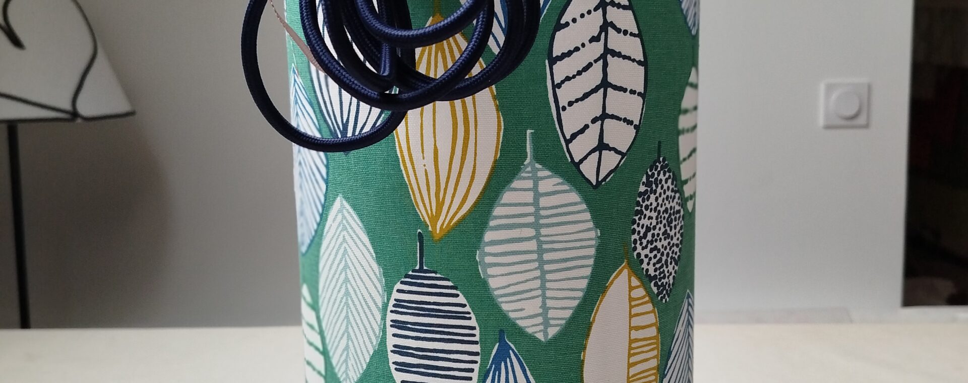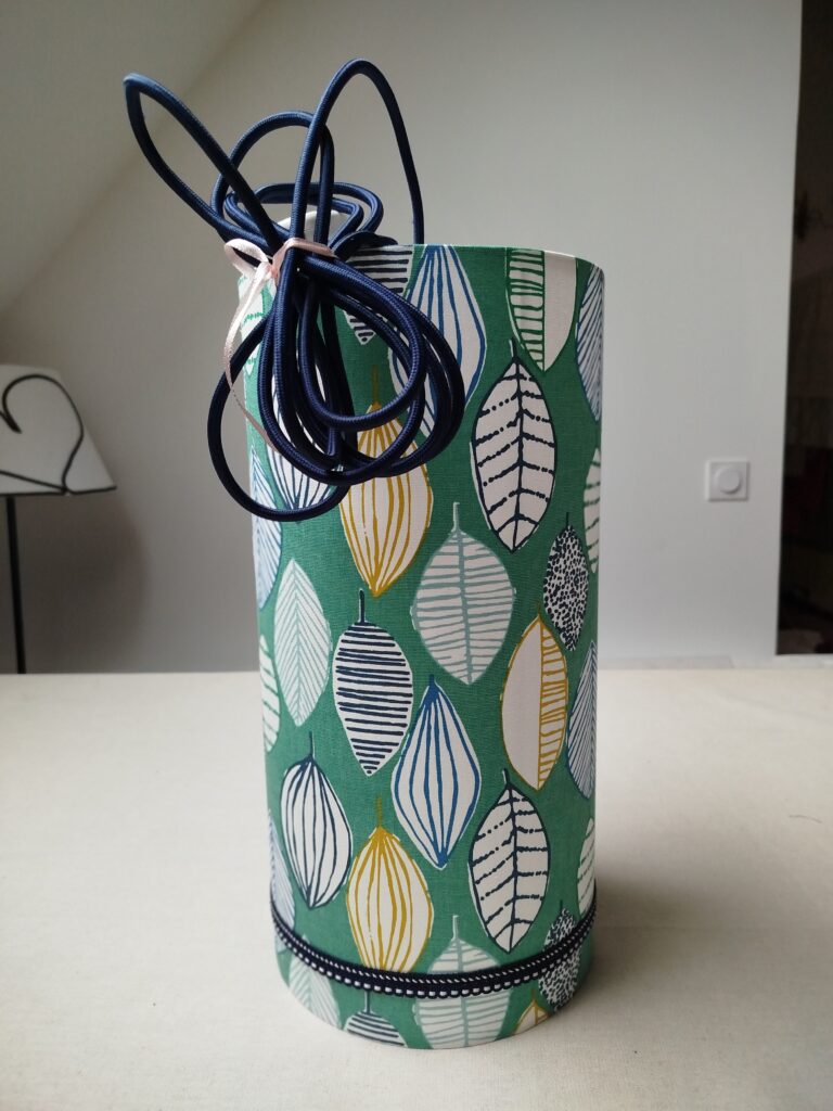 Baladeuse cylindrique : 40cm ht x 20cm diamètre- câble textile lisse bleu marine avec interrupteur & prise 300cm
