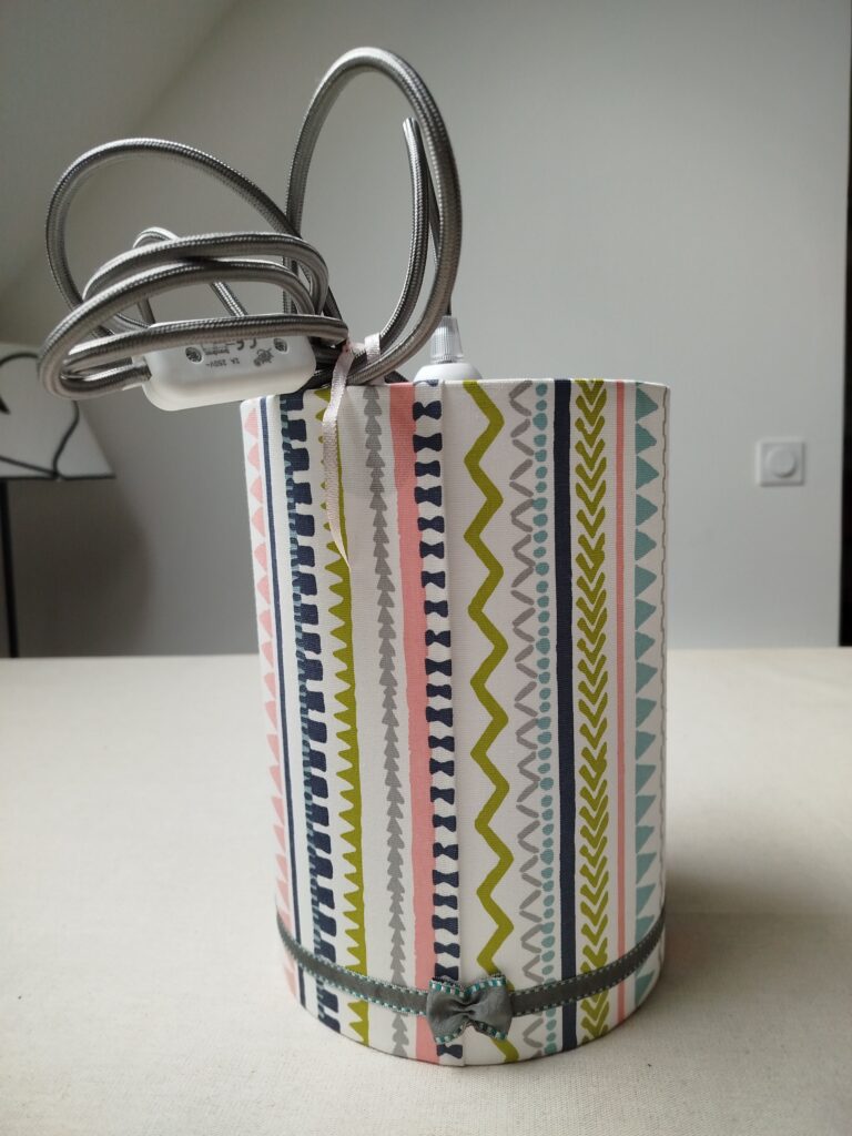 Baladeuse cylindrique : 25cm ht x 18cm diamètre- câble textile lisse gris souris avec interrupteur & prise 300cm